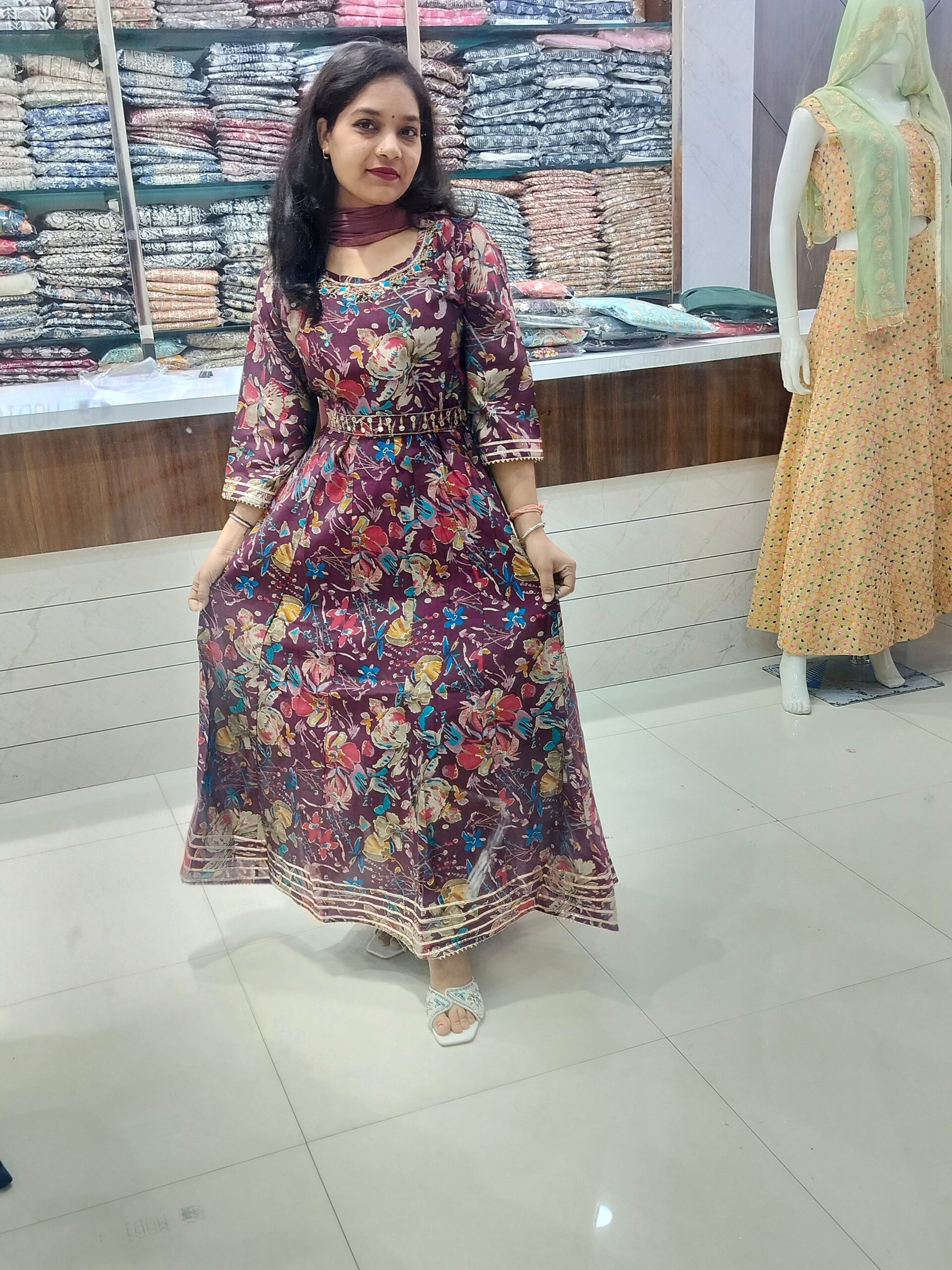 Wine colour anarkali pattern 3 piece with full embroidery cotton fabric